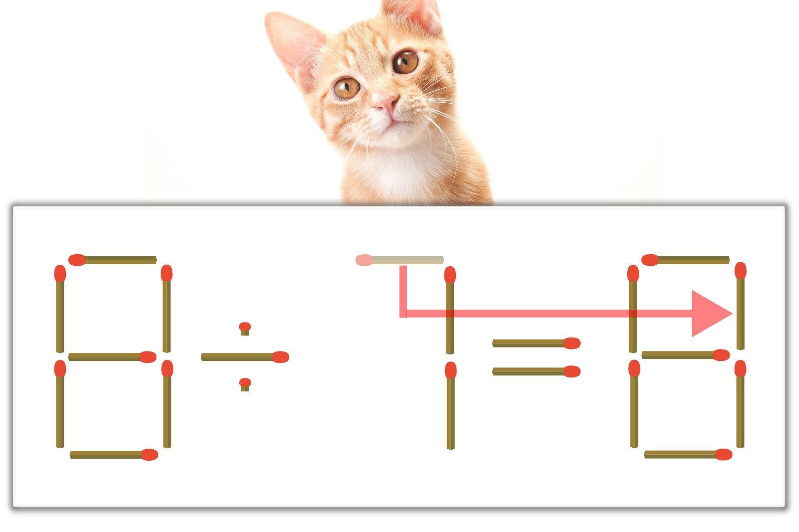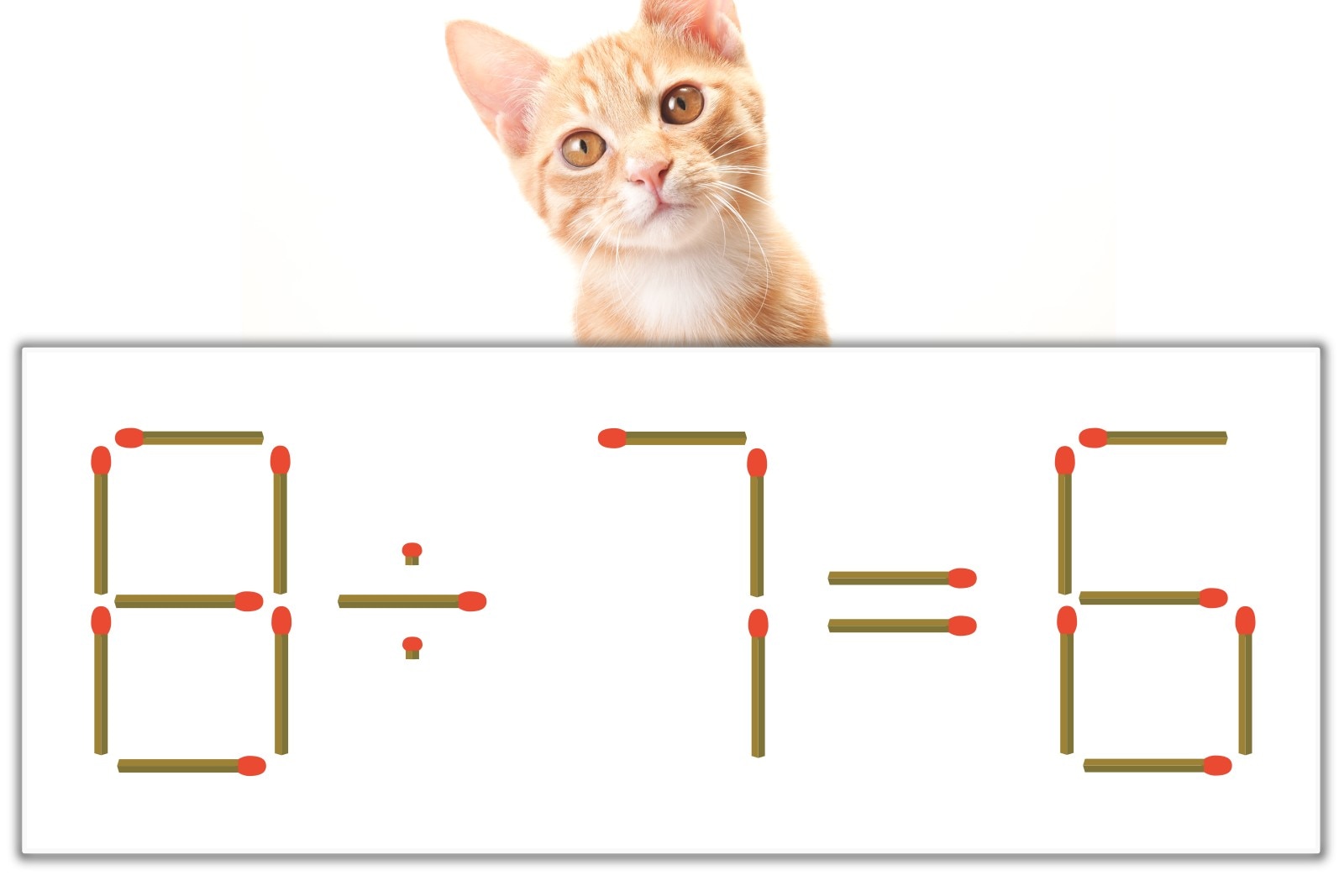 「7」のマッチ棒を1本、右にスライドさせて「8」を作り、「8÷1=8」にする。※解答は複数ある場合があります。