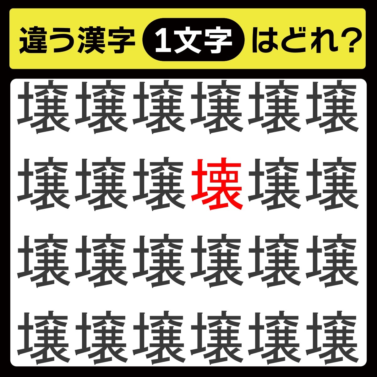 違う漢字は、上から2行目、右から3番目の文字でした!