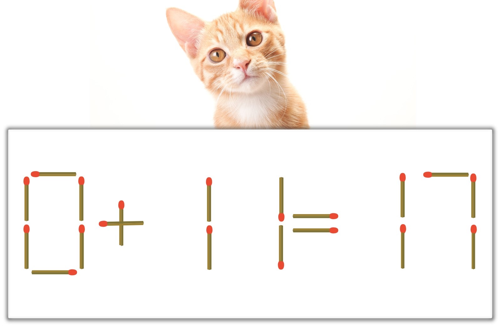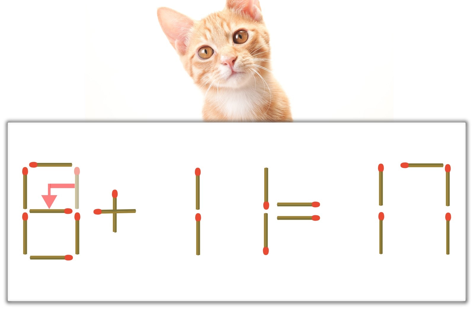 【問題】マッチ棒を1本動かして式を正しくしてください。