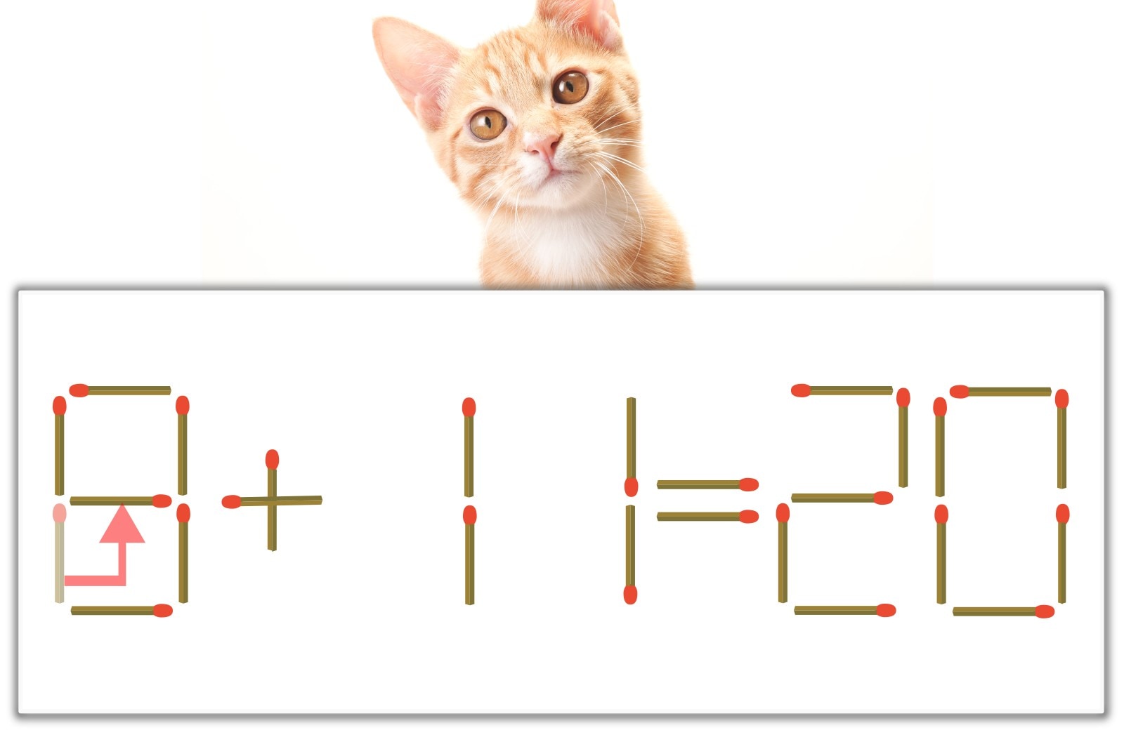 【問題】マッチ棒を1本動かして式を正しくしてください。