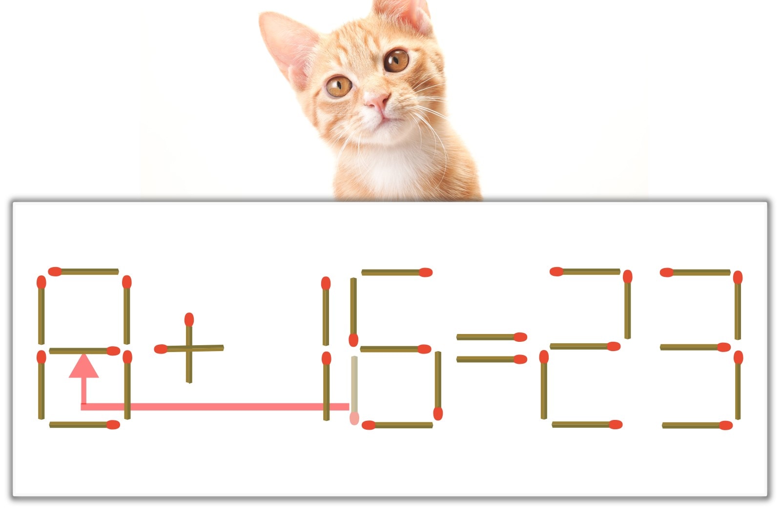 【問題】マッチ棒を1本動かして式を正しくしてください。