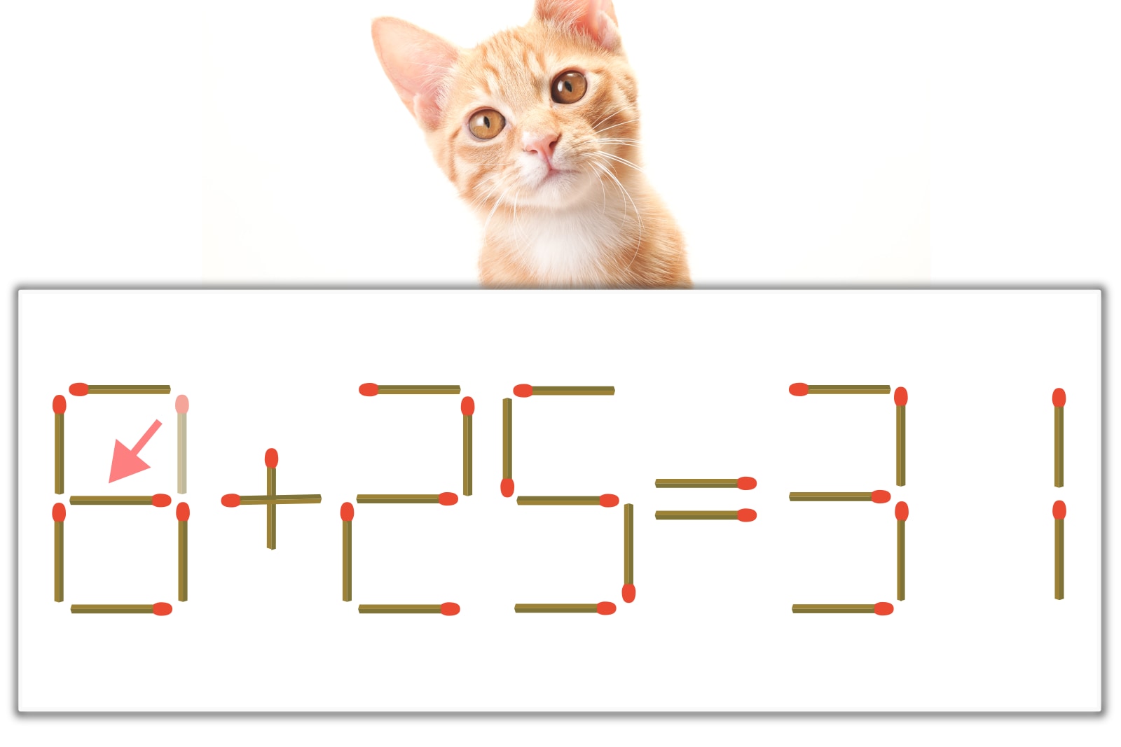 【問題】マッチ棒を1本動かして式を正しくしてください。