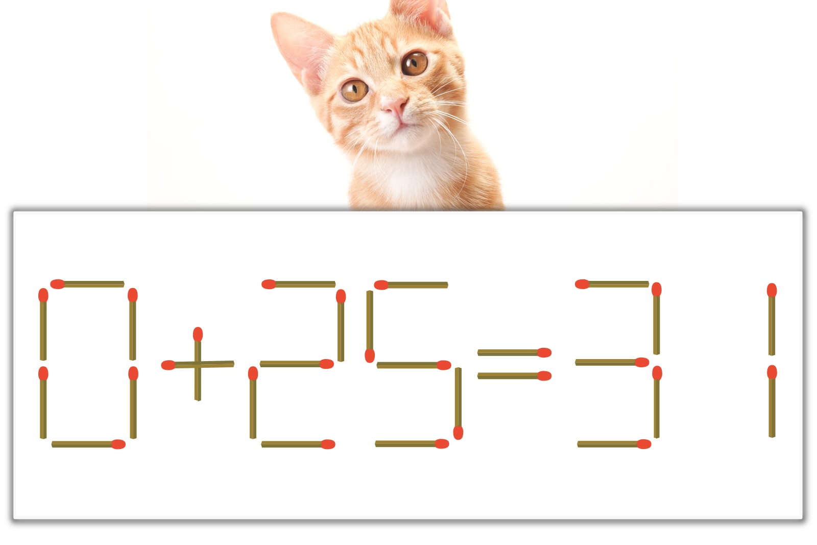 「0」のマッチ棒を1本、左下にスライドさせて「6」を作り、「6+25=31」にする。※解答は複数ある場合があります。