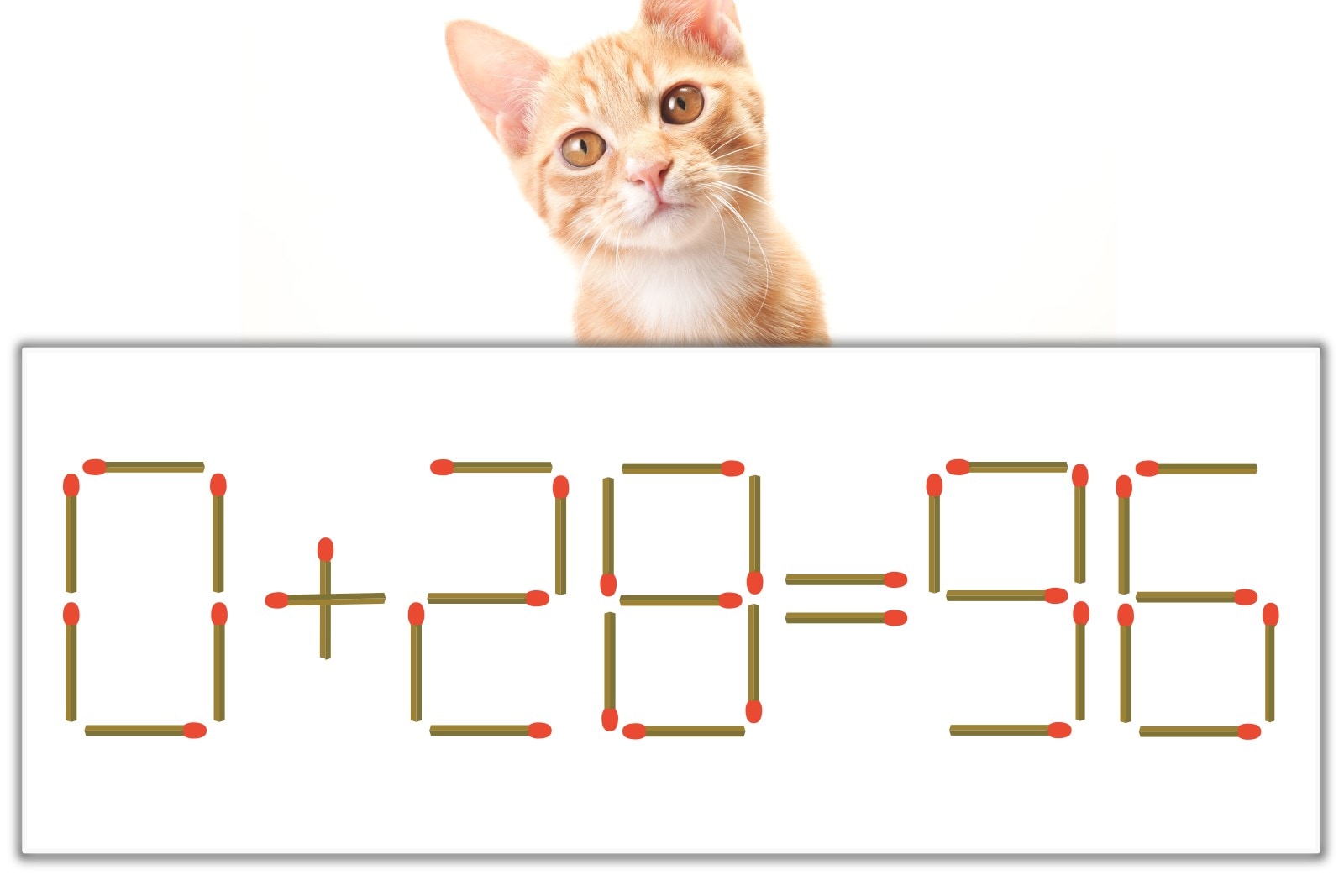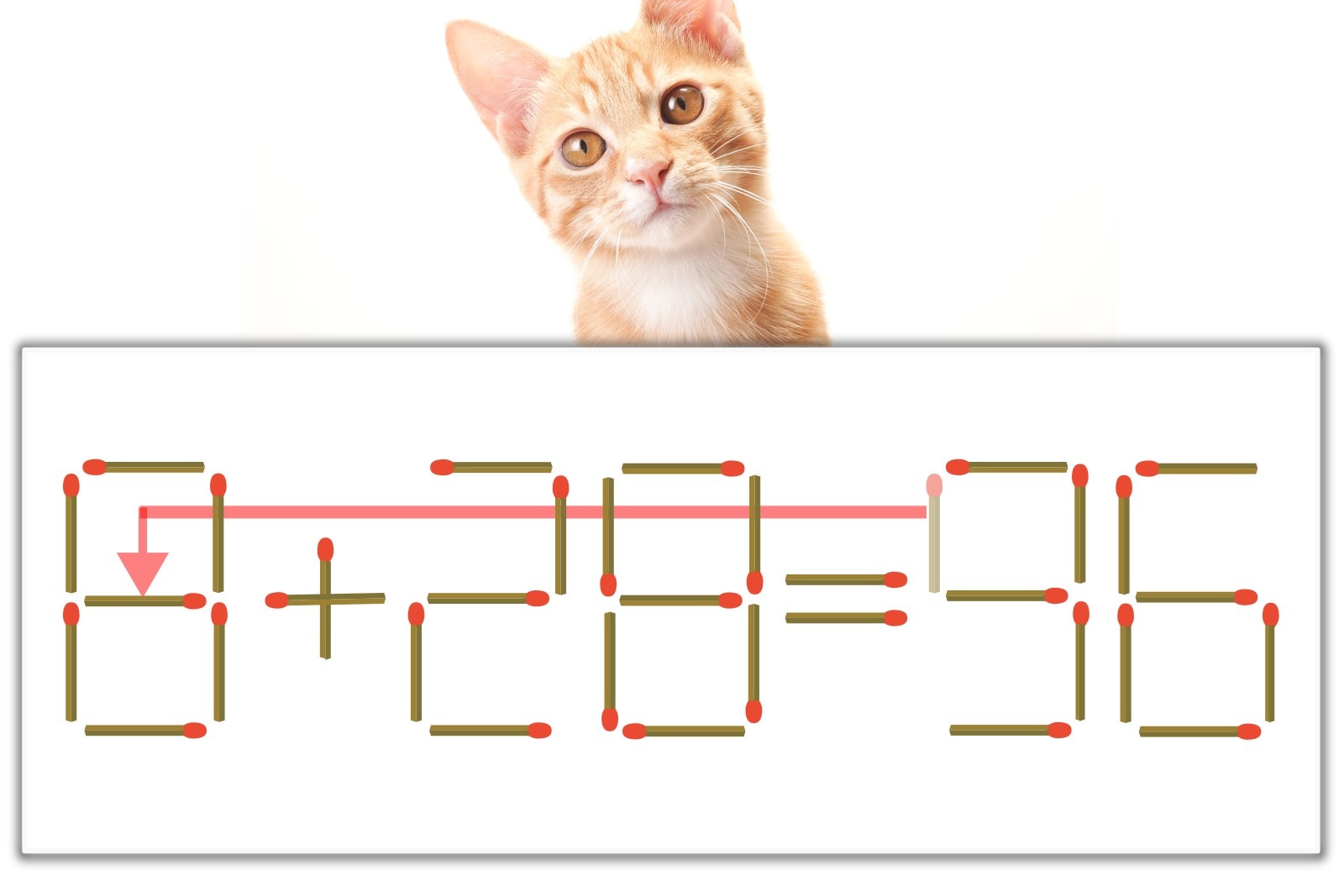 「9」のマッチ棒を1本、左にスライドさせて「8」を作り、「8+28=36」にする。※解答は複数ある場合があります。