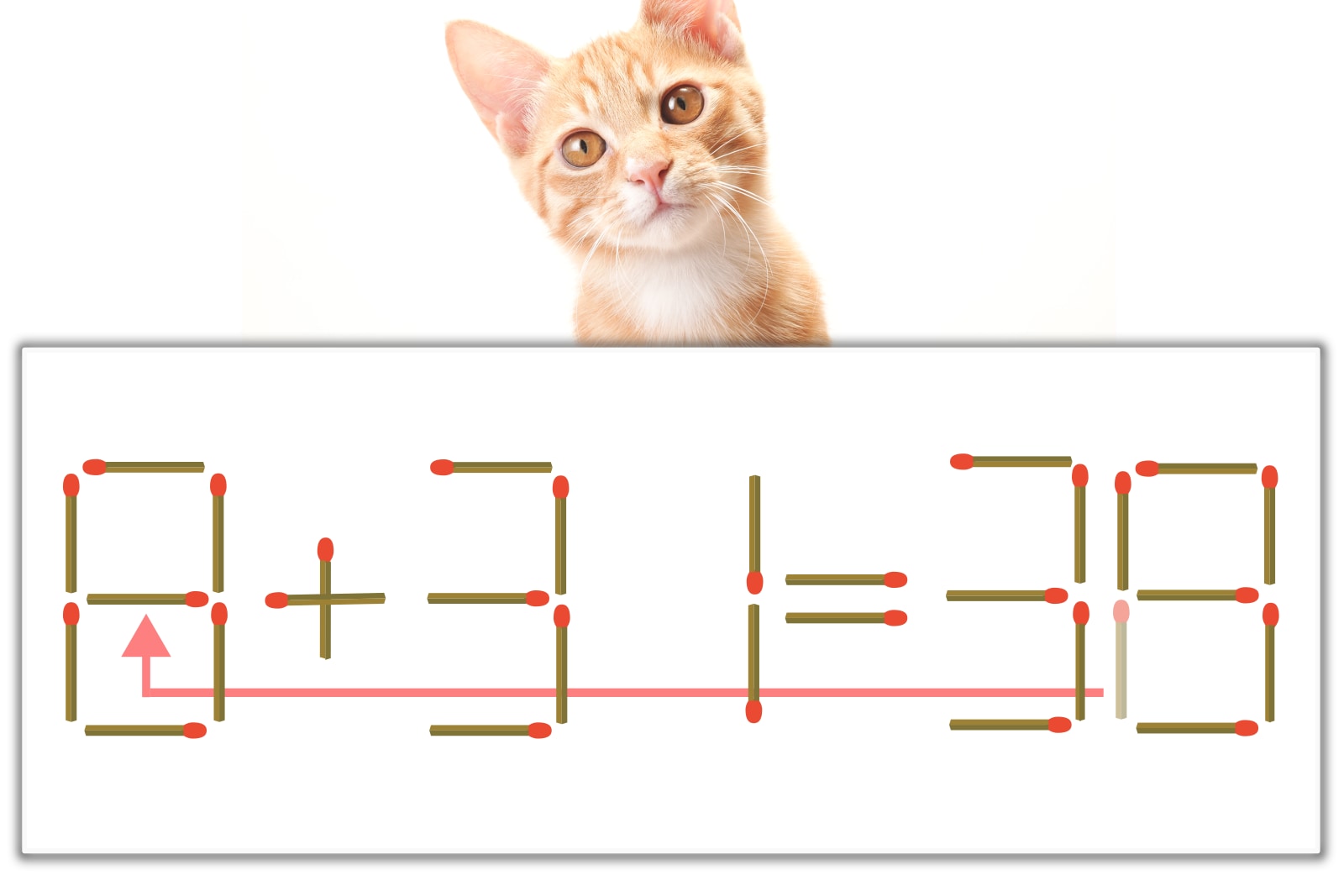 「8」のマッチ棒を1本、左にスライドさせて「8」を作り、「8+31=39」にする。※解答は複数ある場合があります。