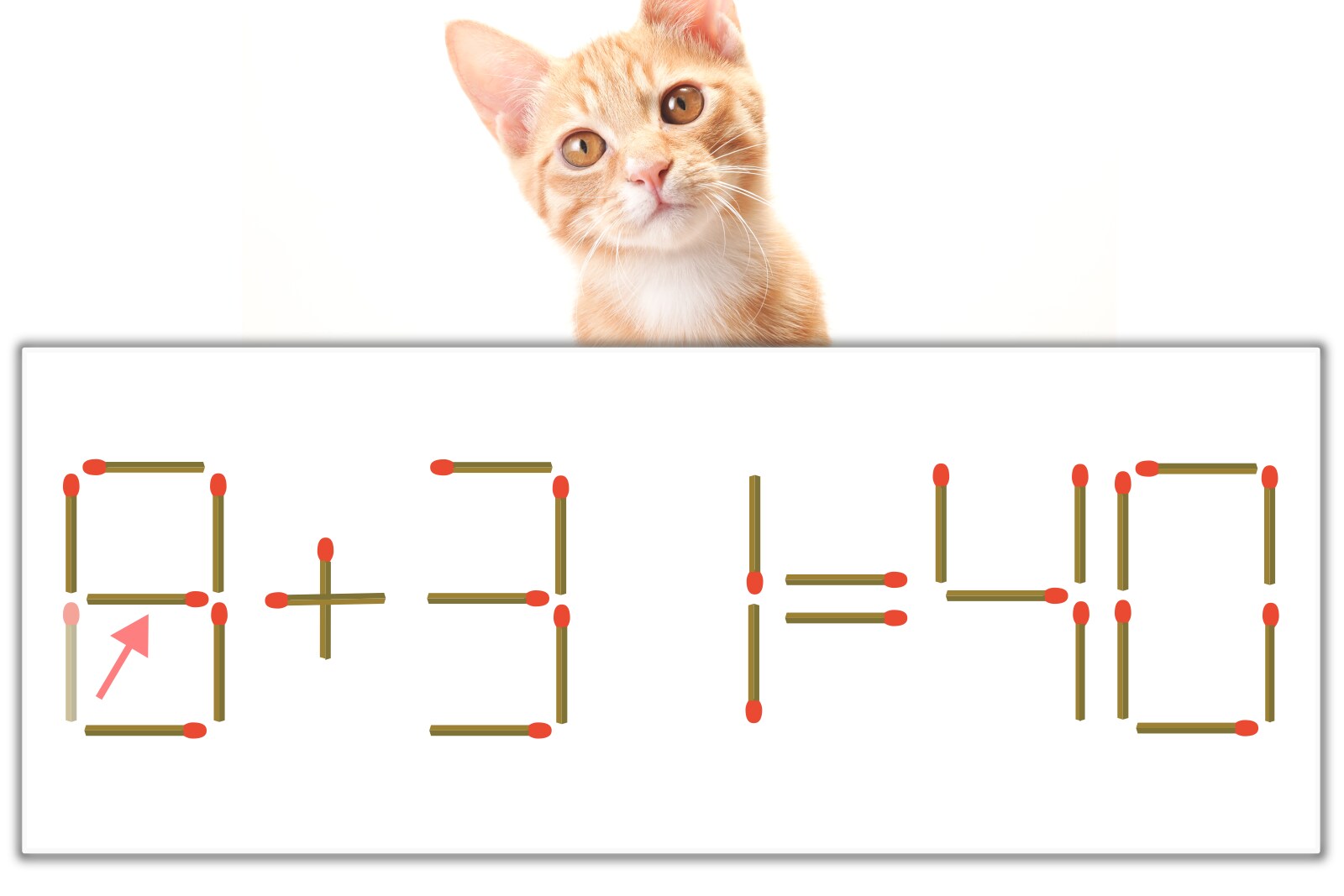 【問題】マッチ棒を1本動かして式を正しくしてください。