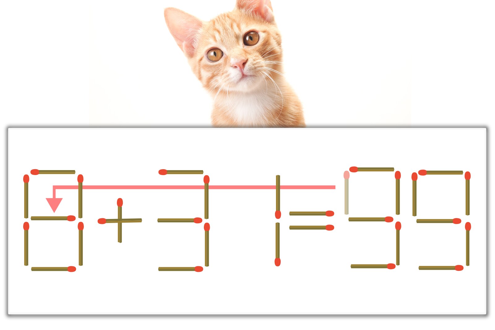 【問題】マッチ棒を1本動かして式を正しくしてください。