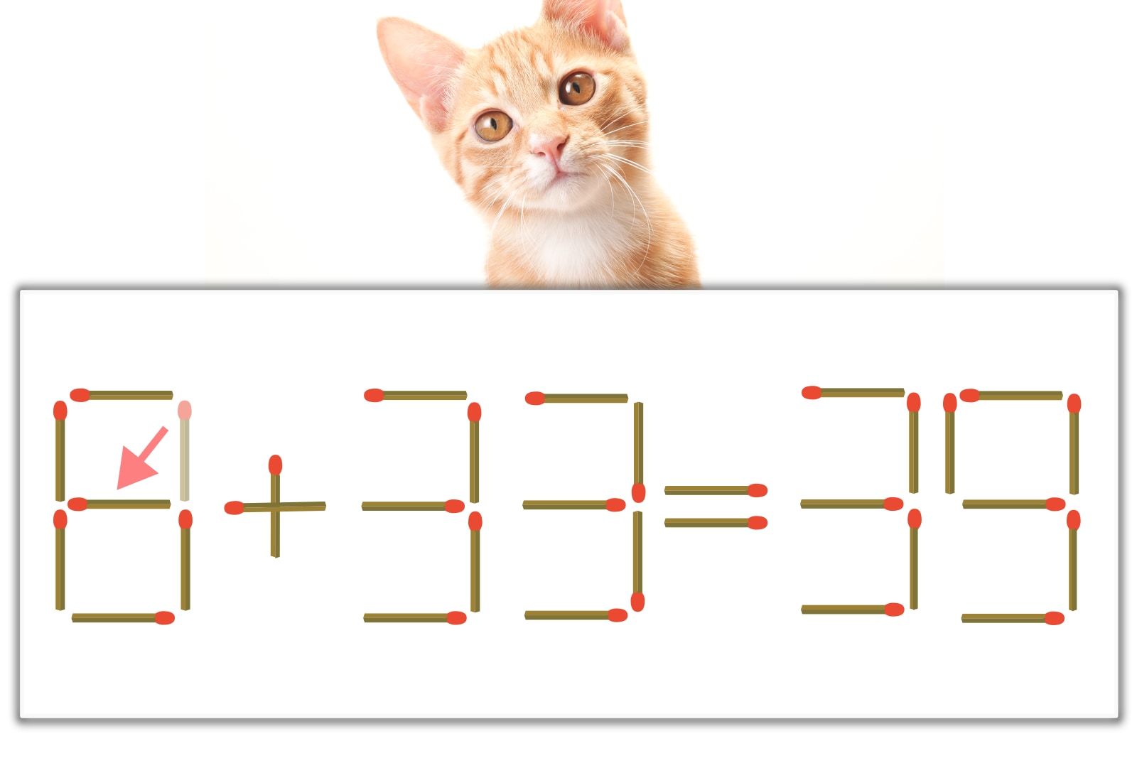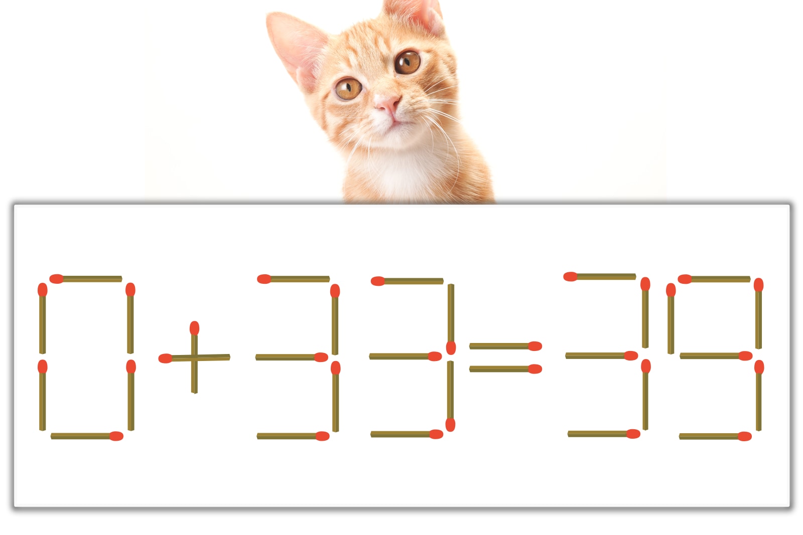 「0」のマッチ棒を1本、左下にスライドさせて「6」を作り、「6+33=39」にする。※解答は複数ある場合があります。