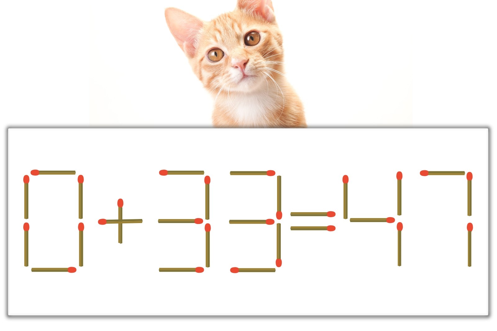 【問題】マッチ棒を1本動かして式を正しくしてください。