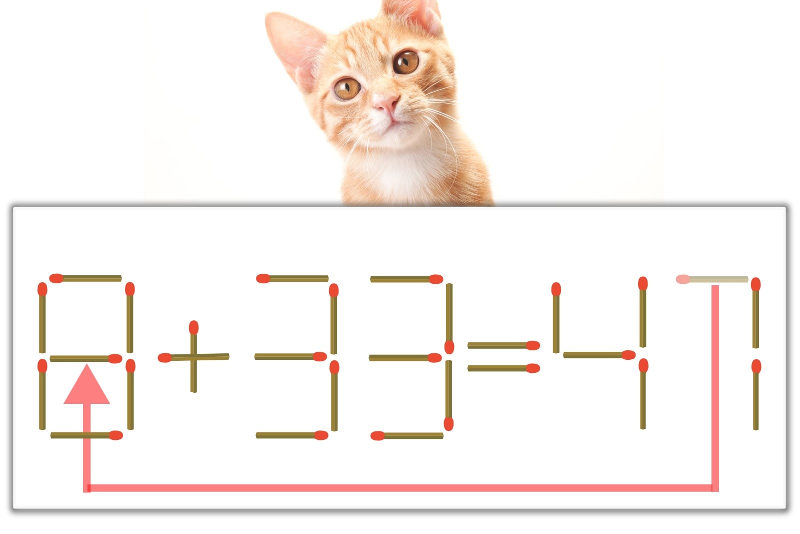 「7」のマッチ棒を1本、左にスライドさせて「8」を作り、「8+33=41」にする。※解答は複数ある場合があります。
