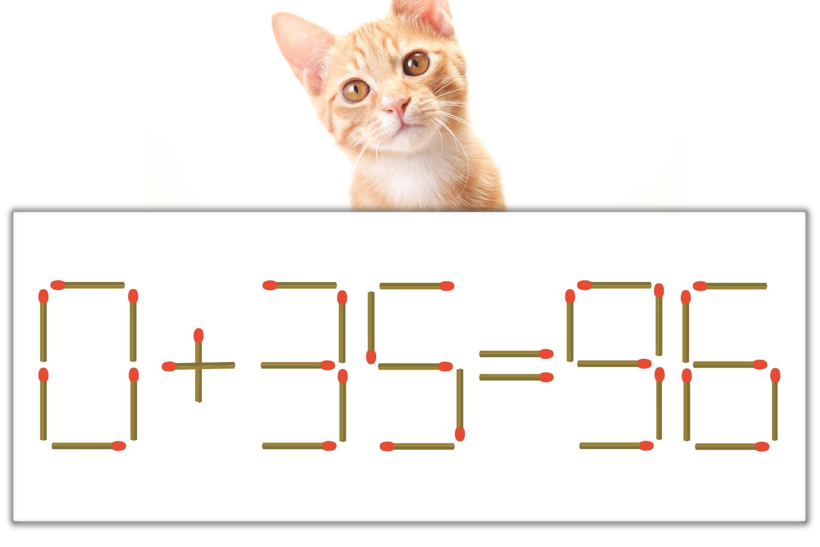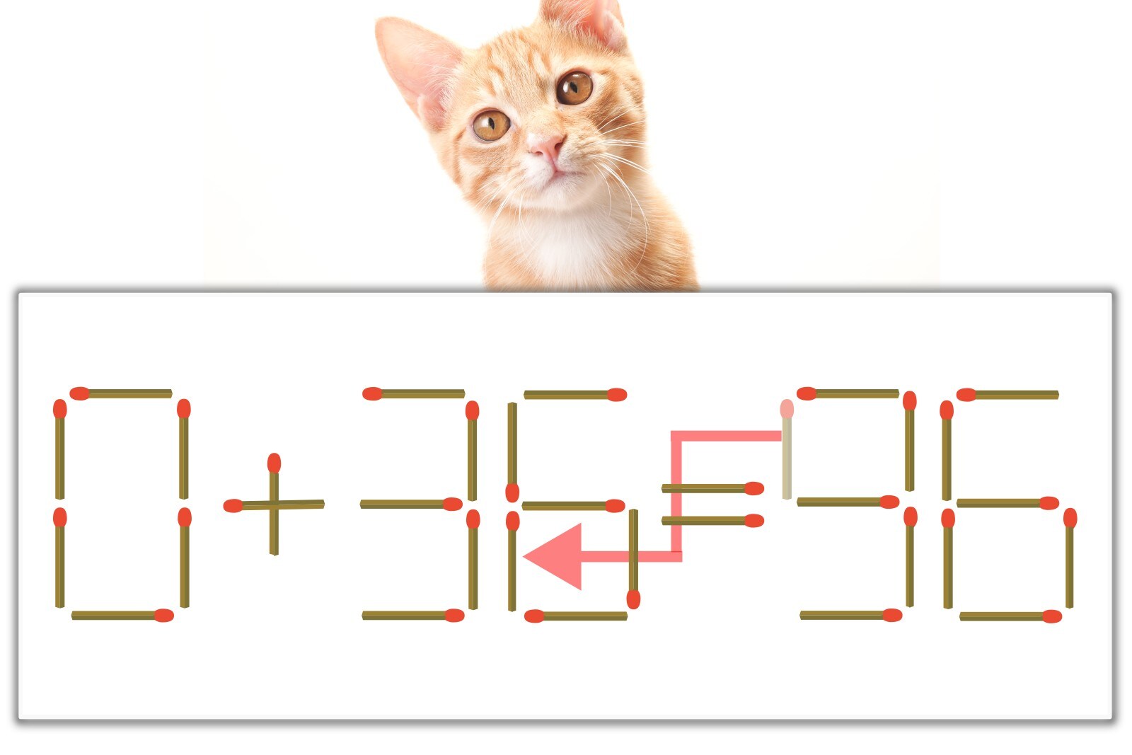 「9」のマッチ棒を1本、左にスライドさせて「6」を作り、「0+36=36」にする。※解答は複数ある場合があります。