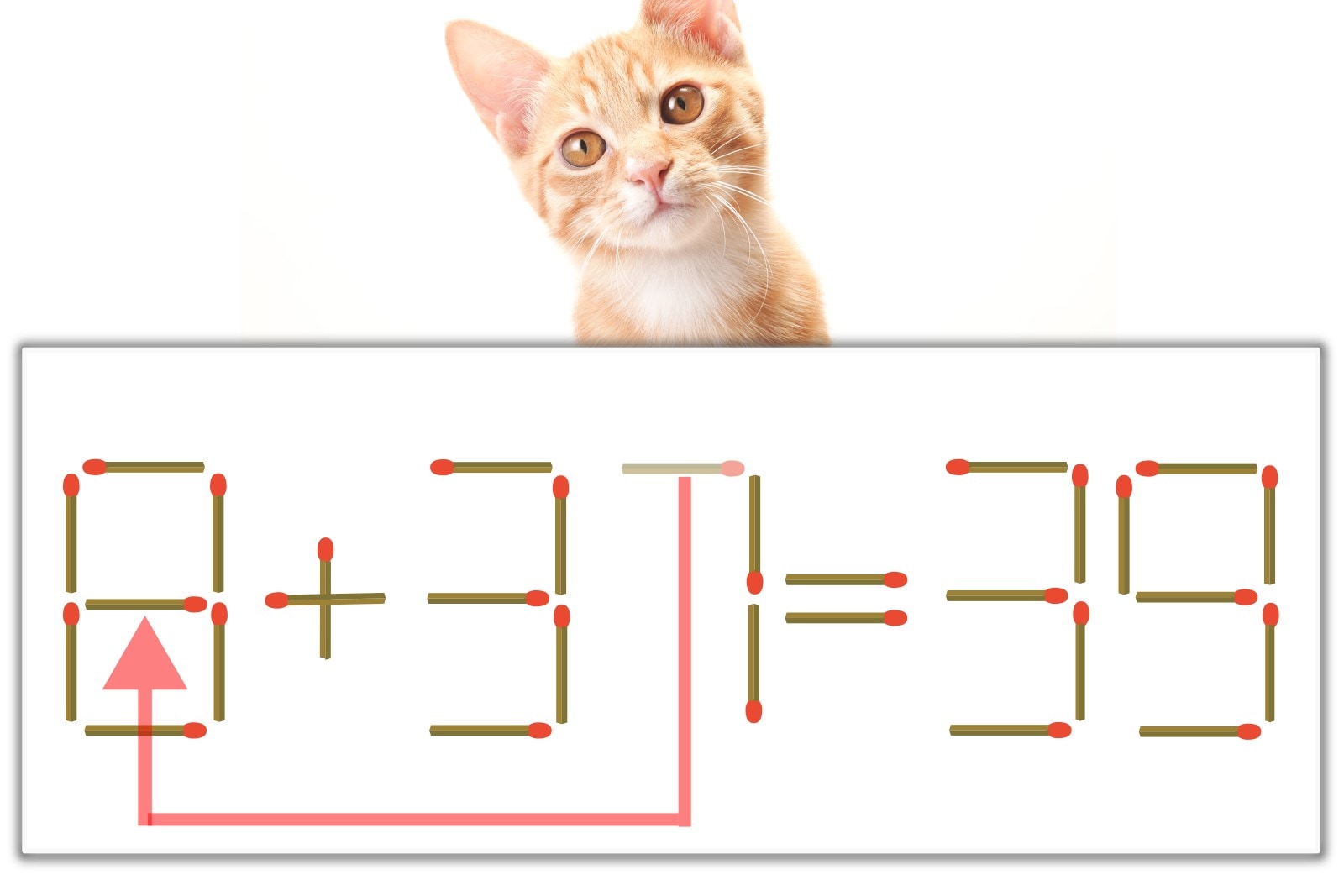 「7」のマッチ棒を1本、左にスライドさせて「8」を作り、「8+31=39」にする。※解答は複数ある場合があります。