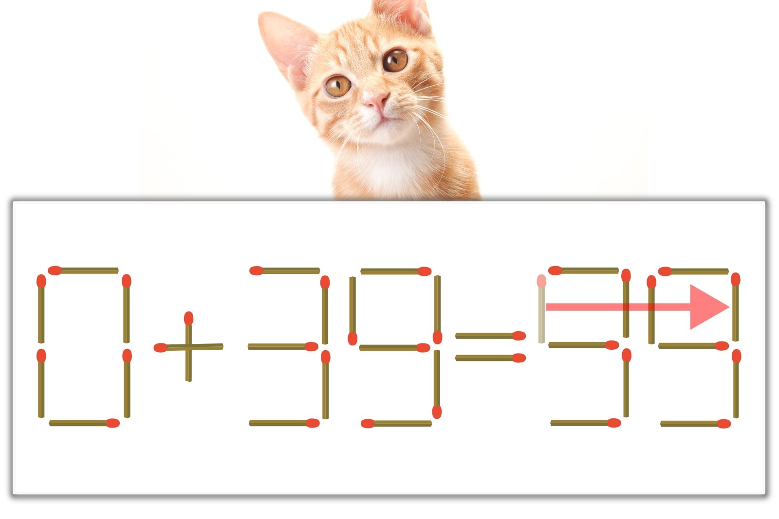 「9」のマッチ棒を1本、右にスライドさせて「9」を作り、「0+39=39」にする。※解答は複数ある場合があります。