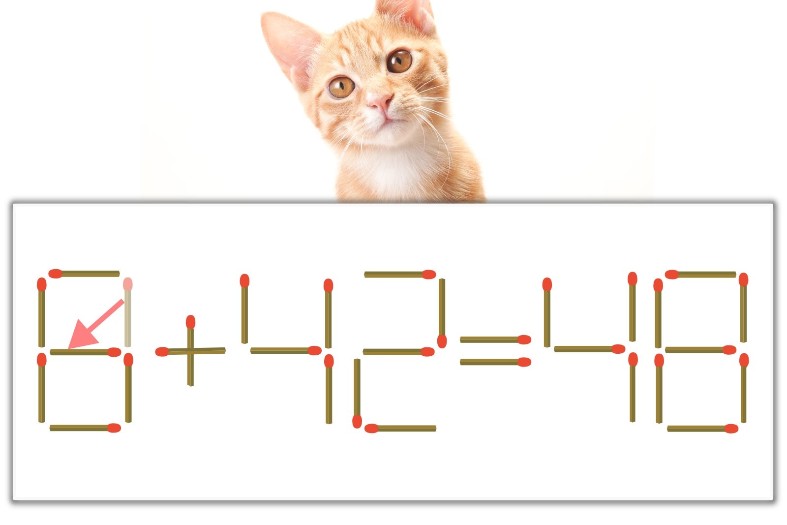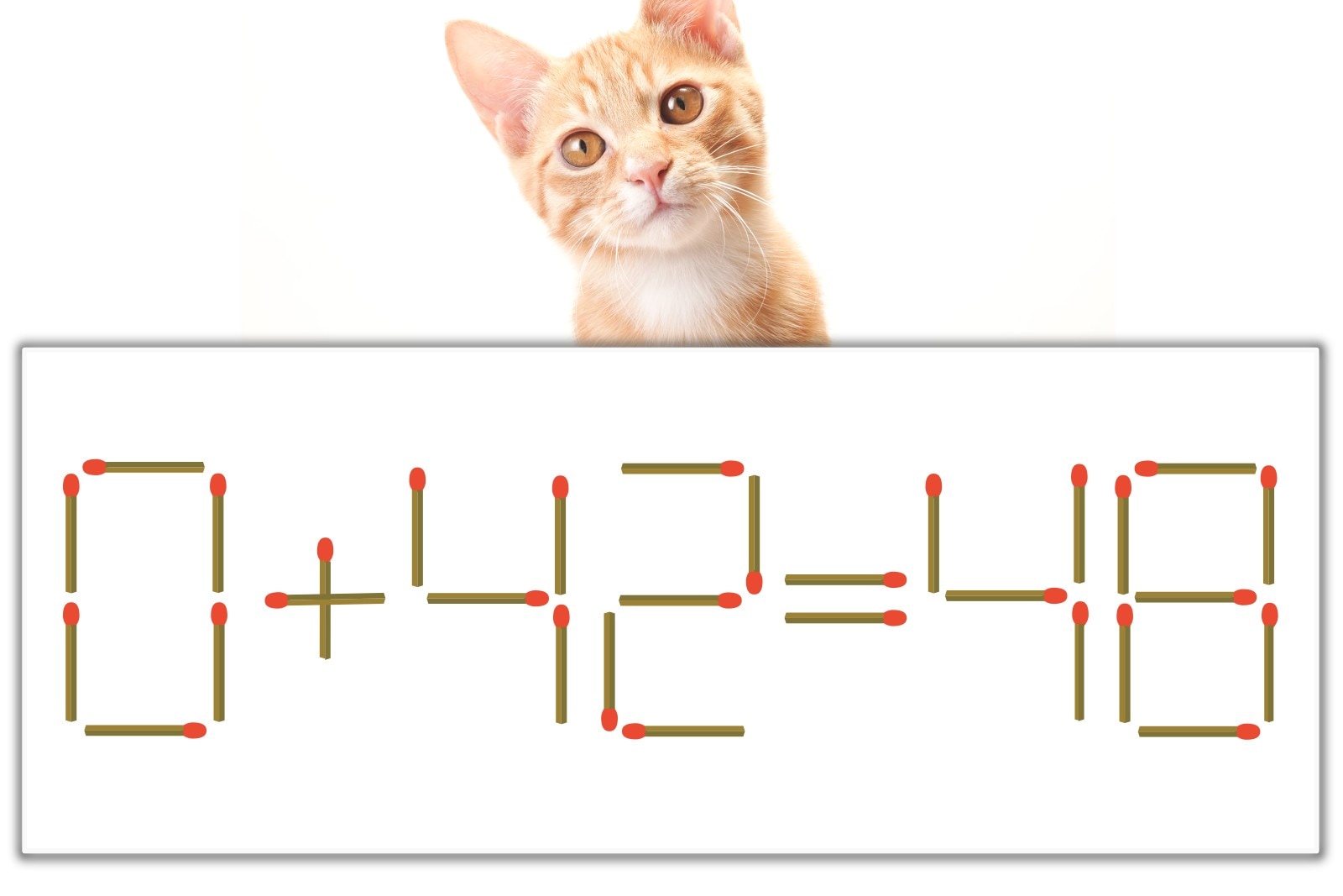 「0」のマッチ棒を1本、左下にスライドさせて「6」を作り、「6+42=48」にする。※解答は複数ある場合があります。