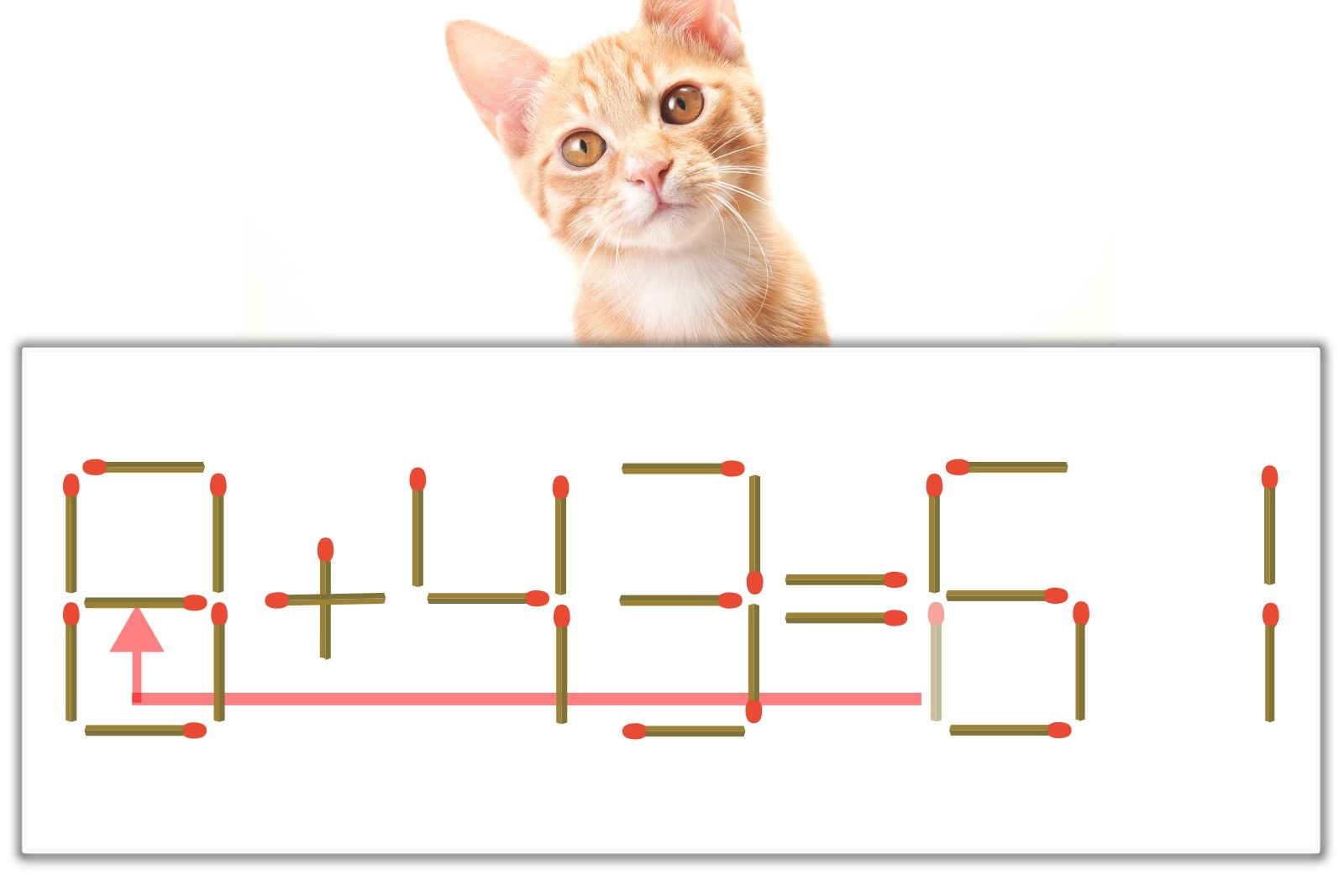【問題】マッチ棒を1本動かして式を正しくしてください。