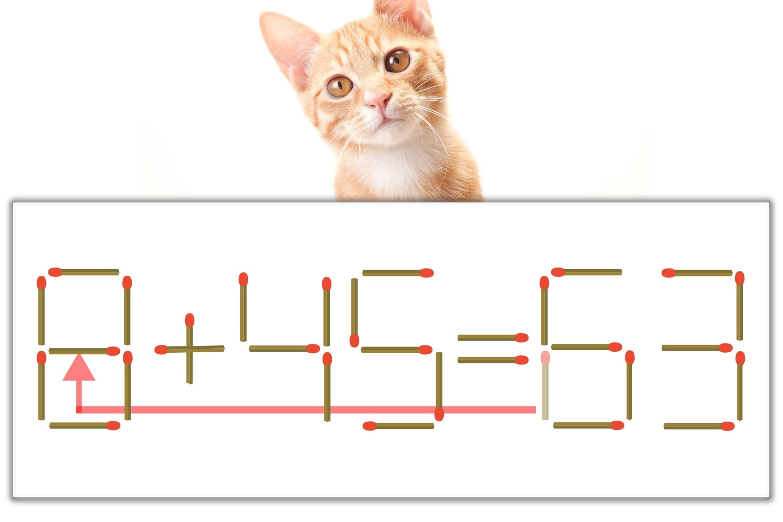 【問題】マッチ棒を1本動かして式を正しくしてください。