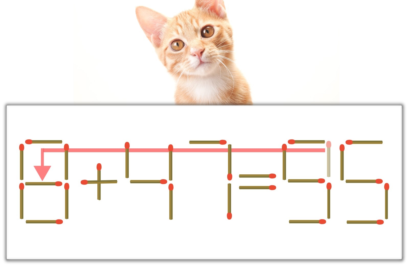 【問題】マッチ棒を1本動かして式を正しくしてください。