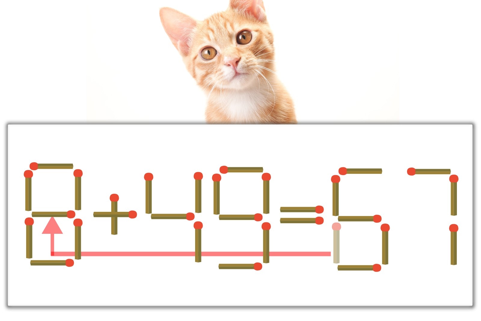 【問題】マッチ棒を1本動かして式を正しくしてください。