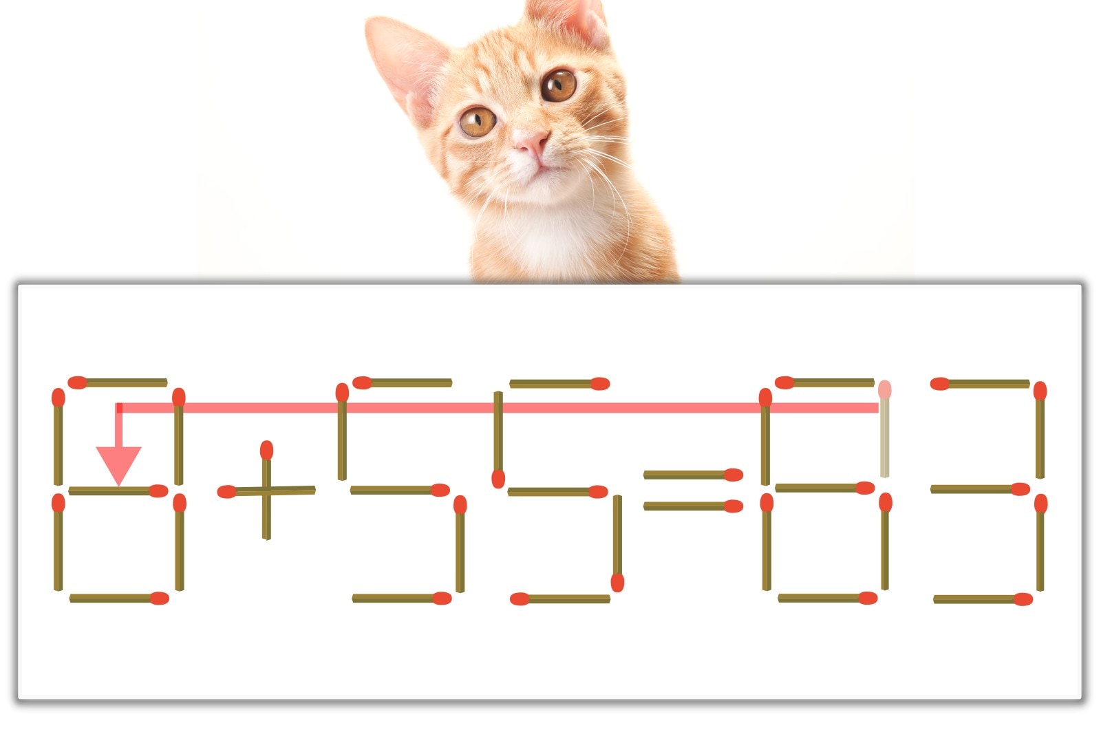 【問題】マッチ棒を1本動かして式を正しくしてください。