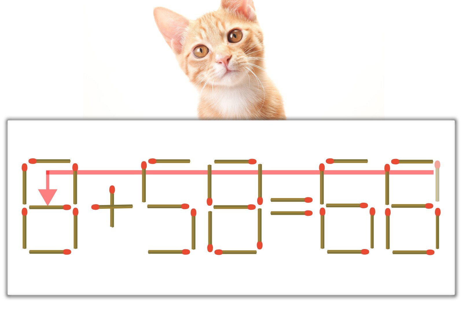 「8」のマッチ棒を1本、左にスライドさせて「8」を作り、「8+58=66」にする。※解答は複数ある場合があります。