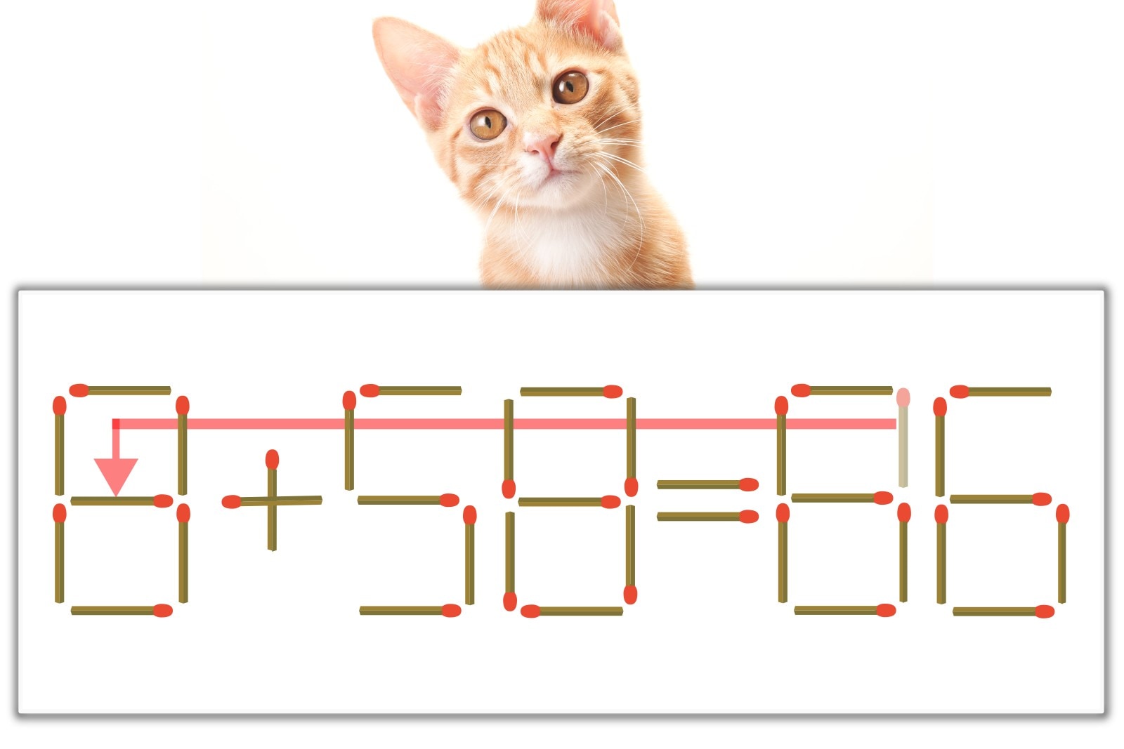 【問題】マッチ棒を1本動かして式を正しくしてください。