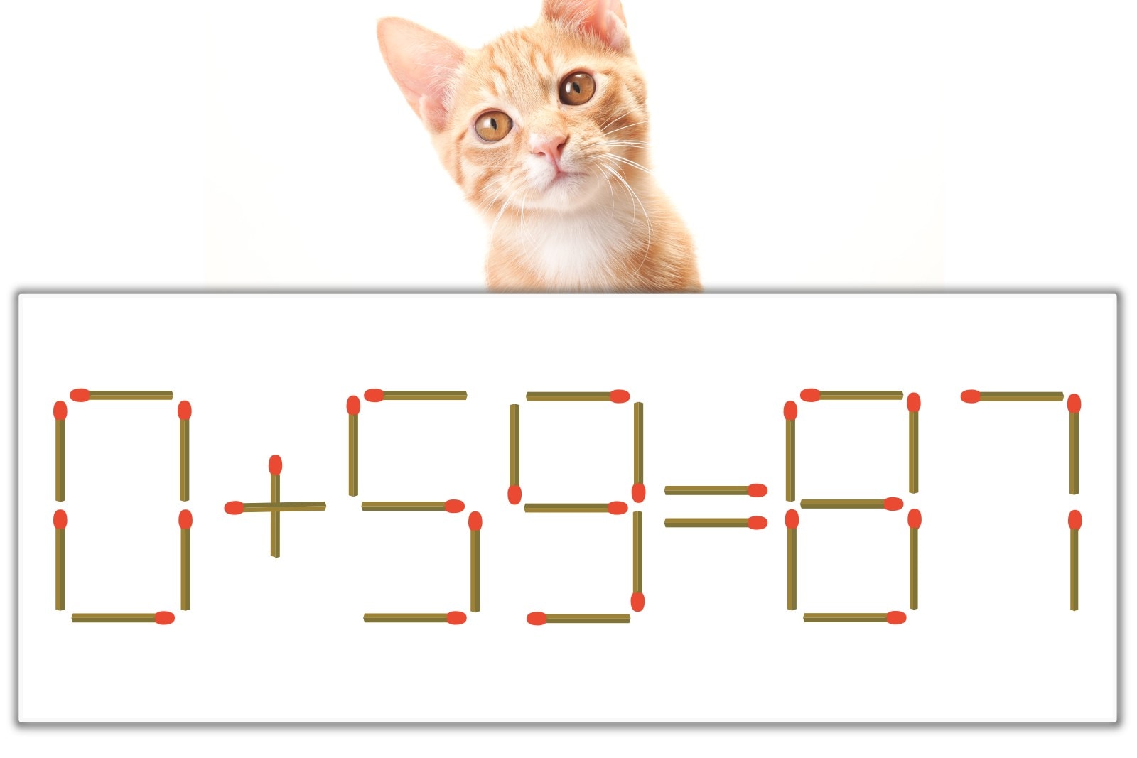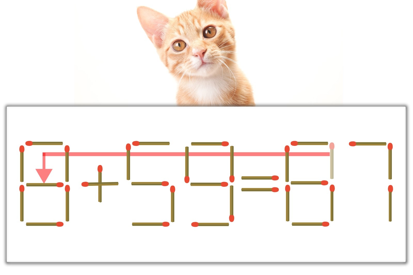 「8」のマッチ棒を1本、左にスライドさせて「8」を作り、「8+59=67」にする。※解答は複数ある場合があります。