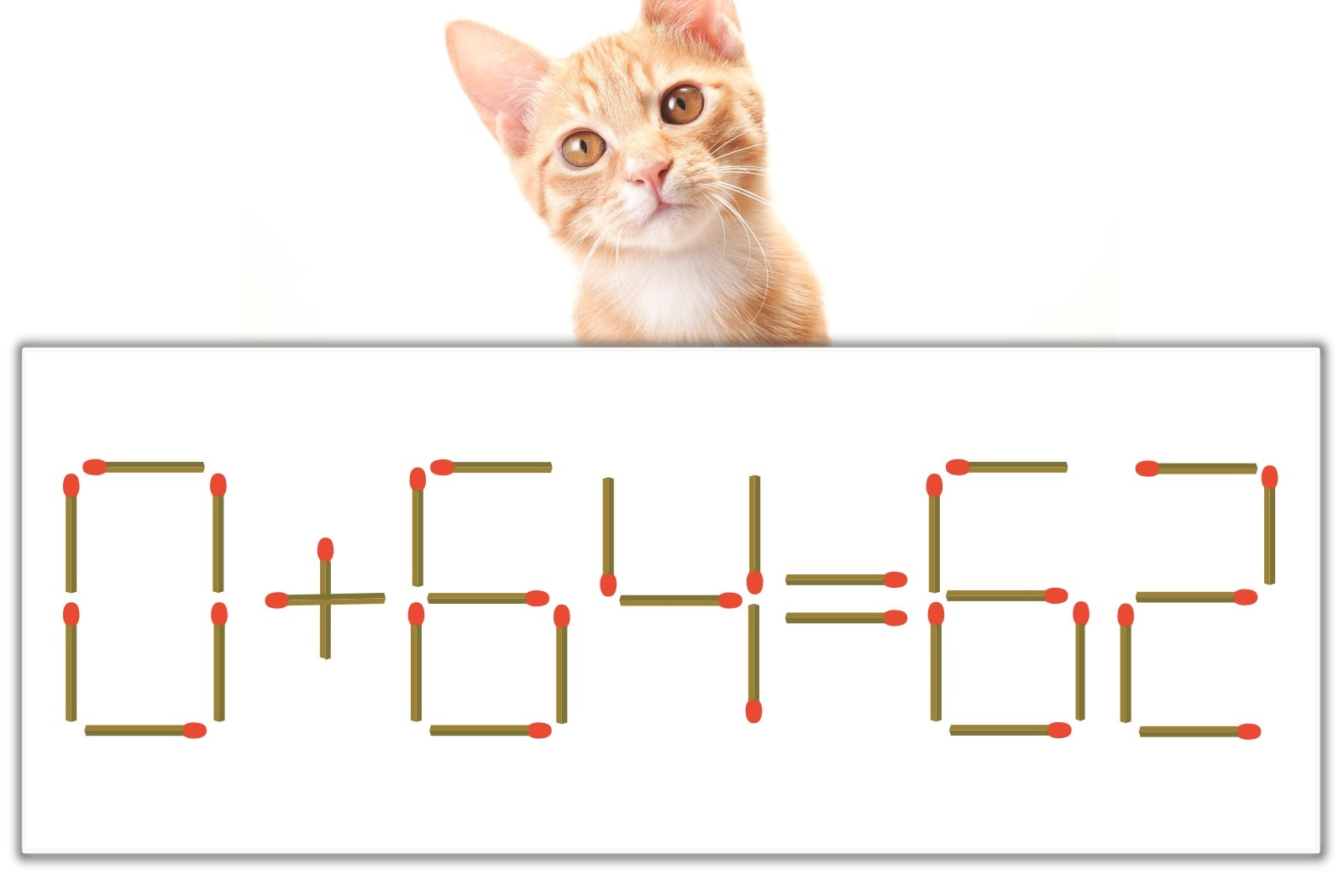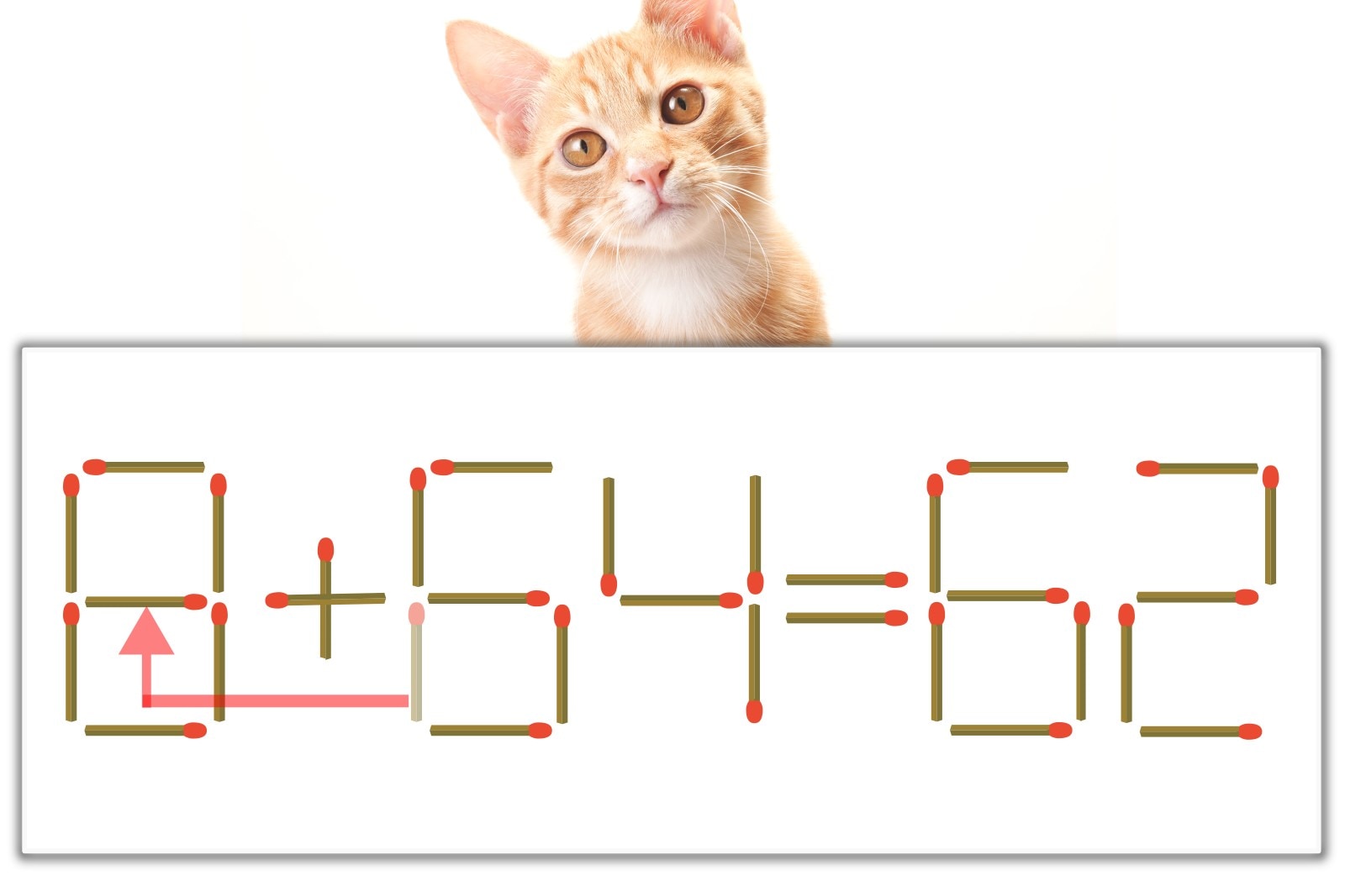 【問題】マッチ棒を1本動かして式を正しくしてください。