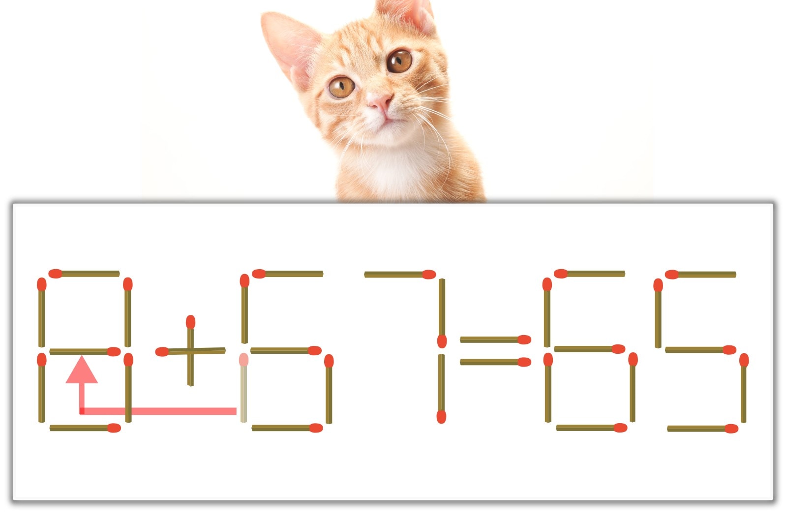 【問題】マッチ棒を1本動かして式を正しくしてください。
