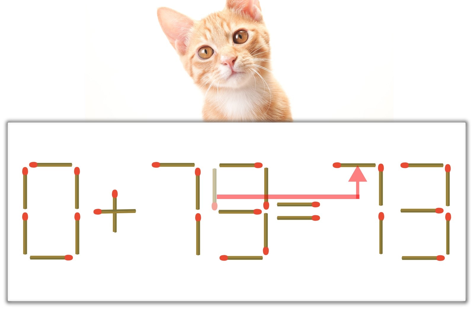 問題の「9」を別の数字に変化させると答えが導き出せます。9のマッチ棒を解答の「1」に移動させて「7」にしてみましょう。すると、「0+73=73」が成立します。
