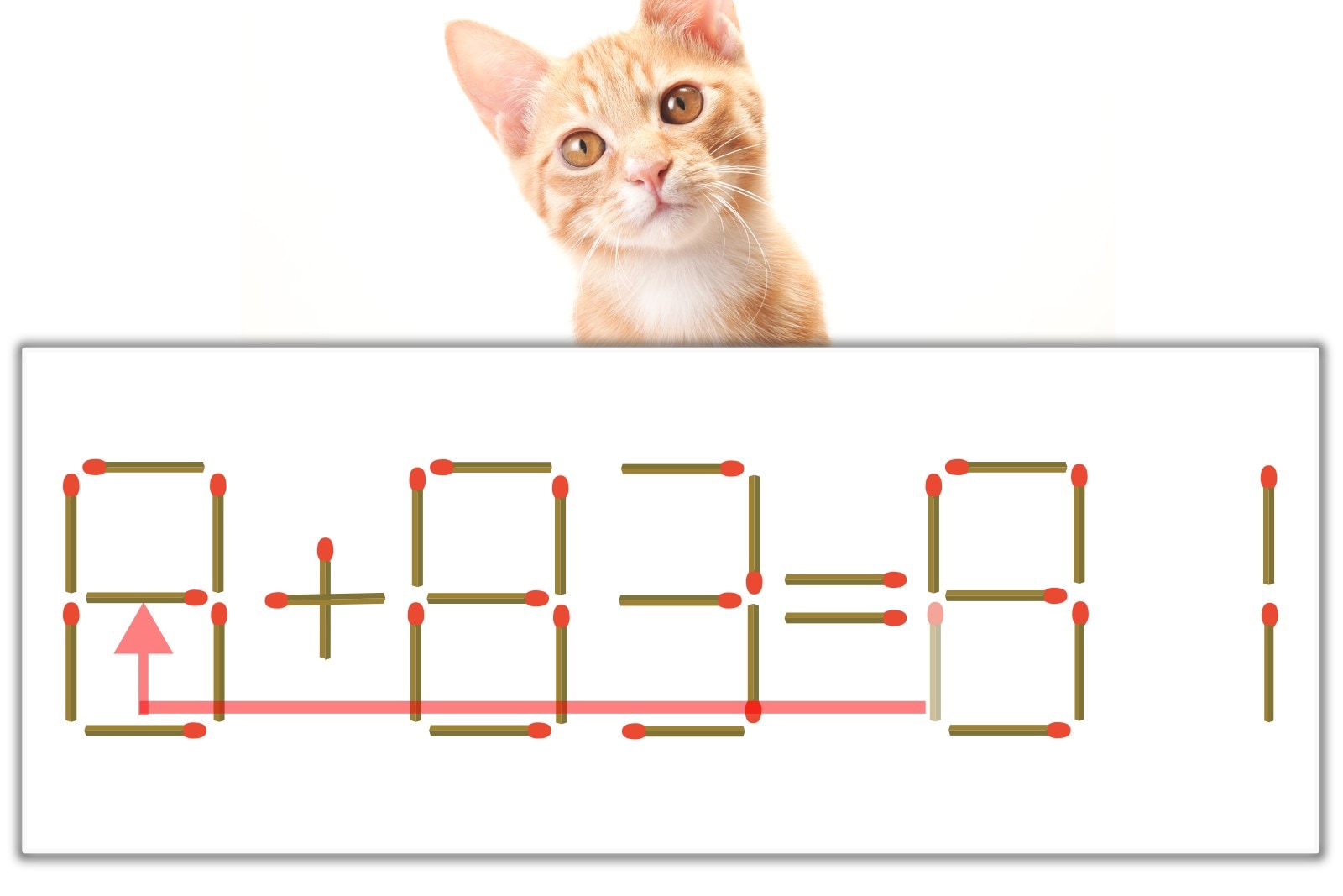 問題の「8」を別の数字に変化させると答えが導き出せます。8のマッチ棒を1本問題の「0」へ移動させて、「8」にしてみましょう。すると、「8+83=91」が成立します。