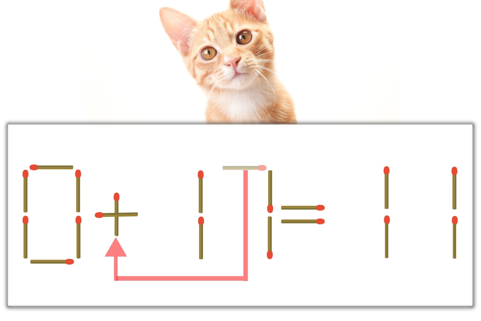 「7」を別の数字に変化させると答えが導き出せます。「8」のマッチ棒を1本移動して、「-」を「+」にしてみましょう。すると、「0+11=11」が成立します。