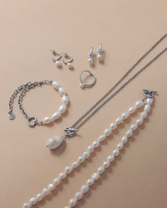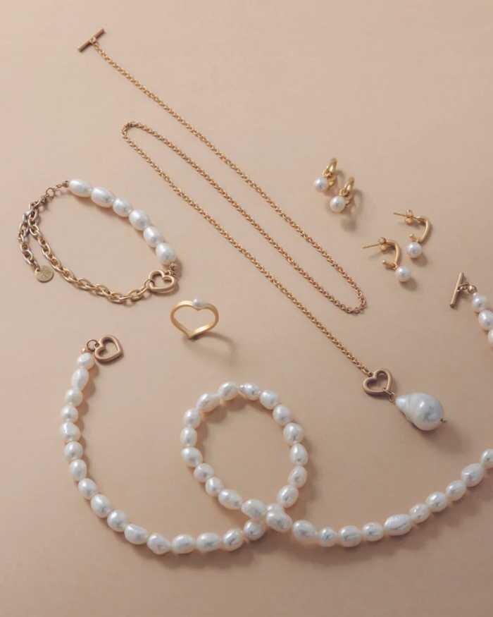 アクセサリーは金属アレルギーに配慮したニッケルフリー仕様で、上品さとカジュアルさを兼ね備えたデザイン。ハートモチーフや華奢なパールが印象的で、デイリーにも特別な日にもマッチします♡