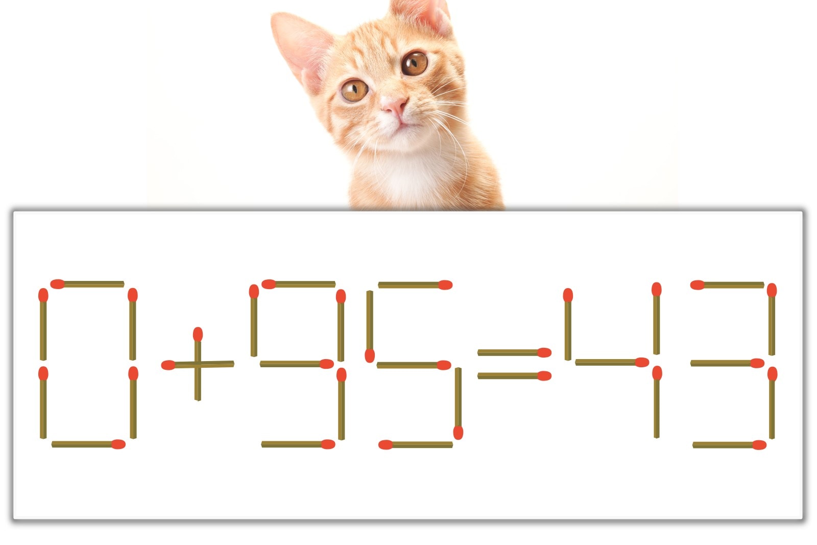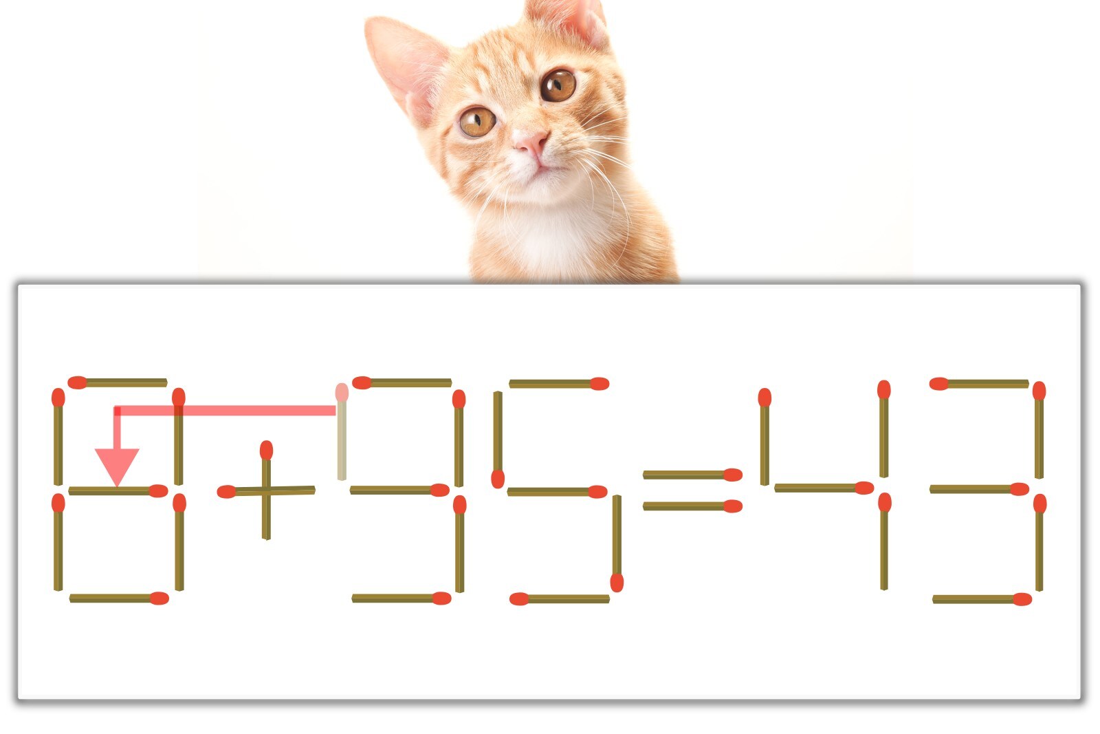 「9」を別の数字に変化させると答えが導き出せます。9のマッチ棒を1本移動させて、「0」を「8」にしてみましょう。すると、「8+35=43」が成立します。