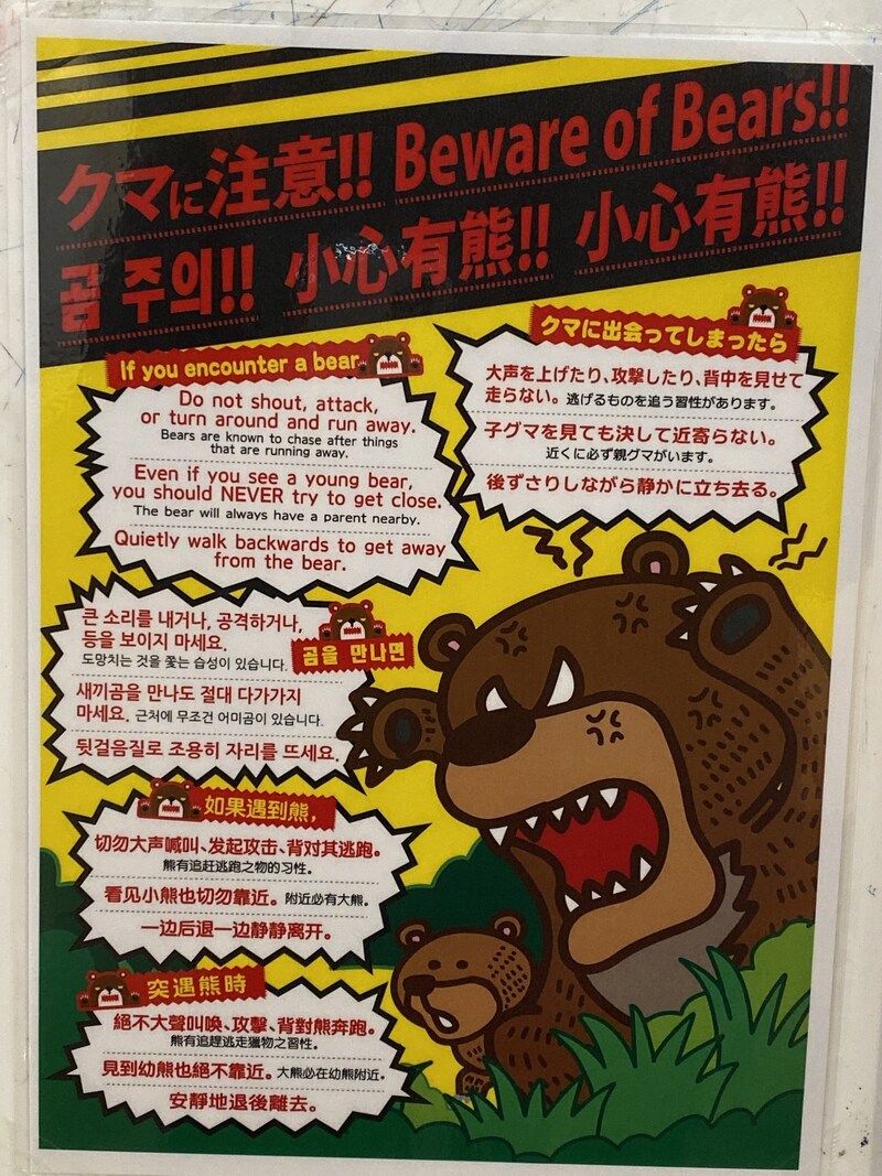 数年前までクマ出没地域は限られた場所だったので、クマ出没看板もそんなに多くはなかった。しかし最近は、看板がある地域が増えてきているように感じるし、クマ出没看板ではカバーしきれないほど、クマ圏と人類圏の境界線が無くなってきているようにも思える。