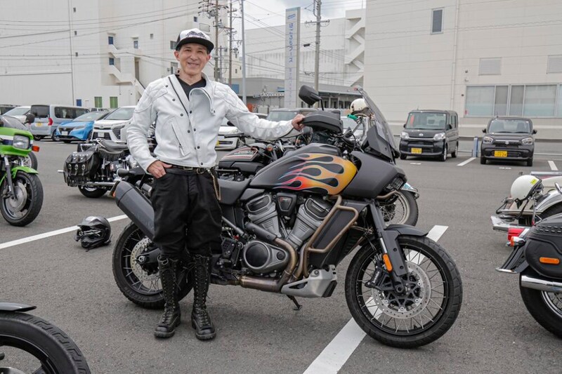H-Dを中心に新旧入り混じる車両が自走参戦。ナックルヘッドやフラットヘッドなどのヴィンテージから、スピードクルーザー、フルスクラッチまで、ラングリッツのレザーを纏い百花繚乱のバイク乗りが集った。目的地は清水の魚市場「河岸の市」。清水漁港で獲れた新鮮な刺身や海鮮丼が食べられる。自慢のバイクで集って、美味しい地物を目指す。革ジャンを着て、ハーレーで走る理由はそれだけで十分だ。