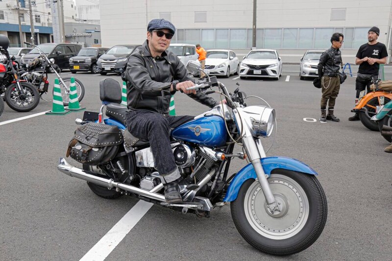 ドレスカラーにカスタムした気品にあるキャスケードのスタイルが、重厚なファットボーイにマッチ。ディッシュホイールのオリジナルの足まわりに加え、サイドバッグやシートのスタッズなど、愛車の装備も無骨な雰囲気が漂う。