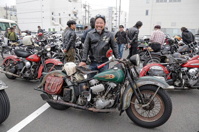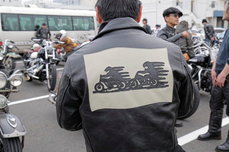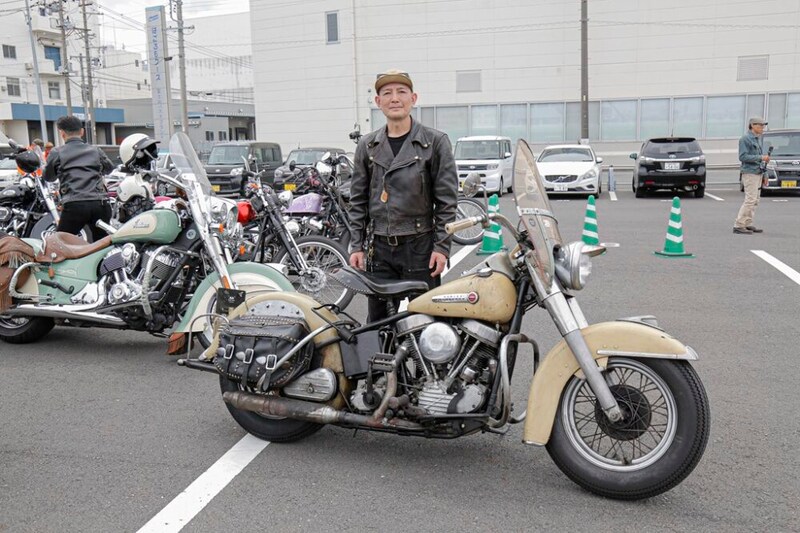 超希少なファーストイヤー ナックルヘッド乗りの石井さんは、革のチョイスにもセンスが光る。ラングリッツのフライトジャケットにレザーパッチやAMAパッチを貼り付けたカスタムに愛着がにじみ出る。