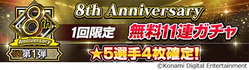 株式会社コナミデジタルエンタテインメントは、モバイルゲーム『eFootball(TM) ウイコレ CHAMPION SQUADS』(以下、『ウイコレ』)の配信開始8周年を記念したキャンペーン“8th Anniversary FEST”を開始したことをお知らせします。