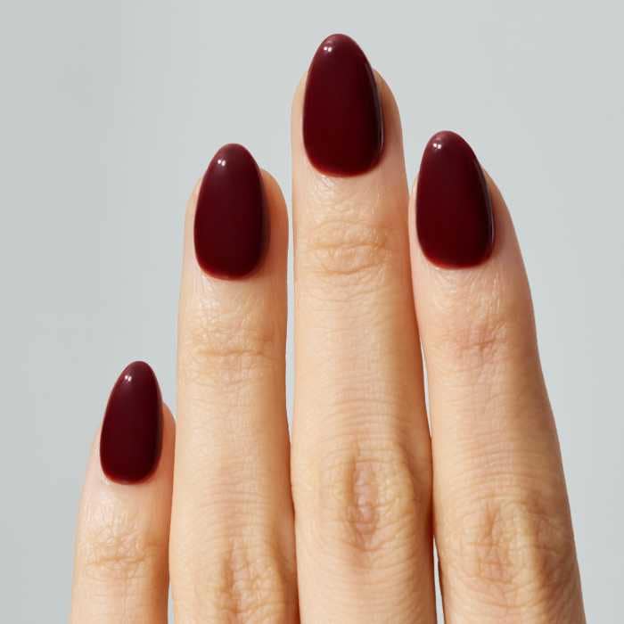 深みのあるバーガンディカラーが大人のエレガンスを演出。艶やかな光沢が指先を美しく引き立てます。