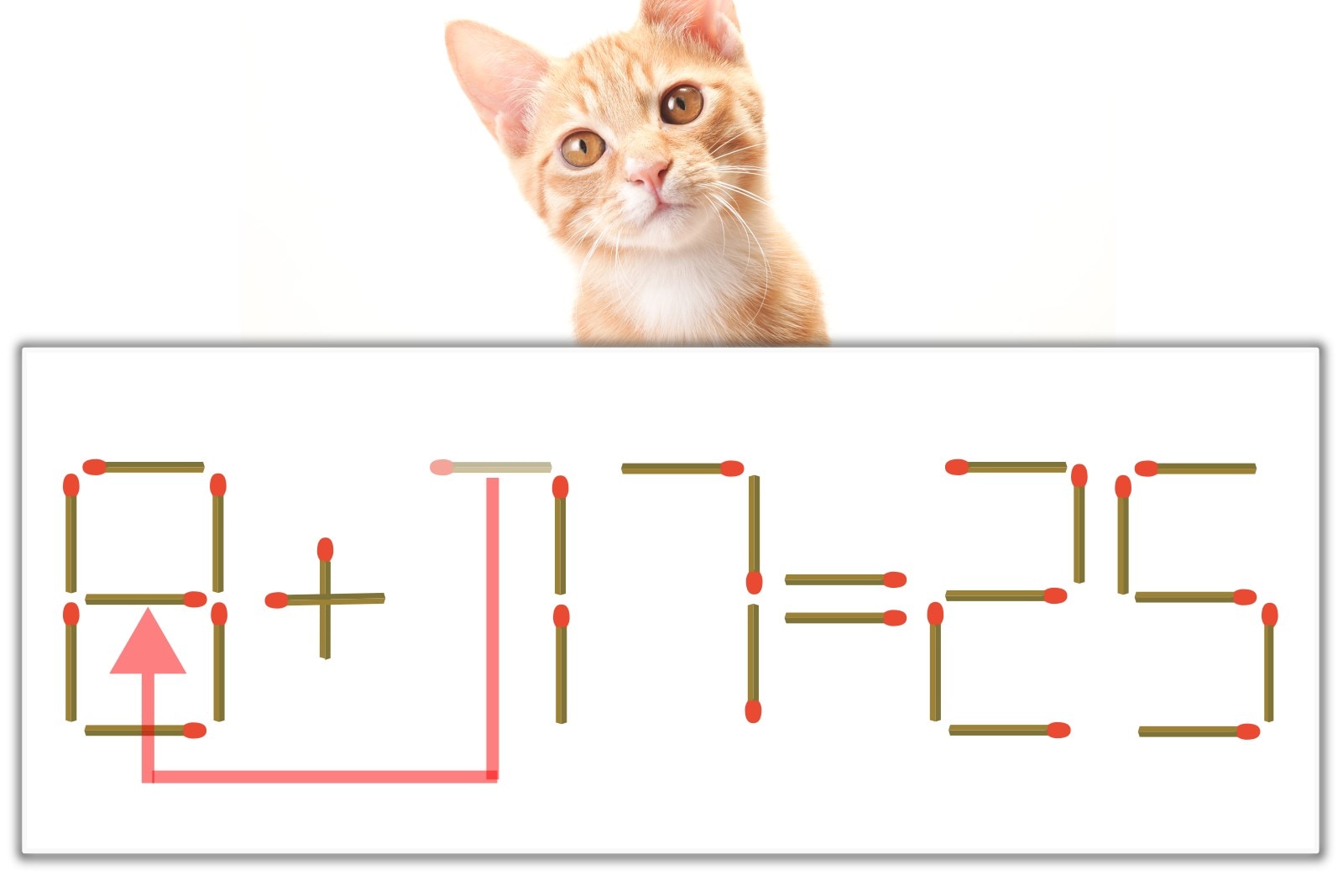 「7」のマッチ棒を1本、左にスライドさせて「8」を作り、「8+17=25」にする。※解答は複数ある場合があります。