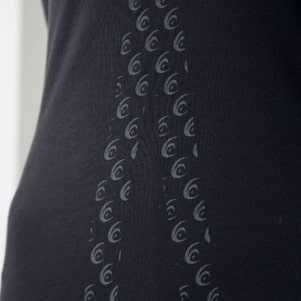 腹部に2本、背中上部に4本、背中下部に2本のプリントを配置し、体全体をやさしく包み込みます。