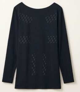 綿95%の生地はやわらかく、吸湿発熱素材で薄手でもしっかりあたたか。背中が出にくい長め丈の設計で、動いてもズレにくく、一日中快適です。重ね着してもごわつかず、日常使いにもおすすめ♪