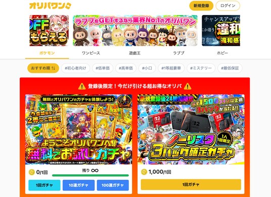 「オリパワン」は、カードファンに向けたオンラインオリパ(オンラインくじ)サービスです。