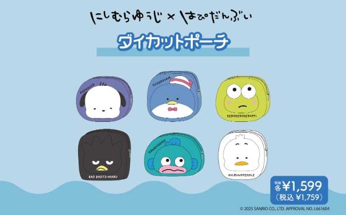 雑貨アイテムとして、はぴだんぶいの仲間たちをモチーフにした「ダイカットポーチ(税込¥1,759)」も発売。