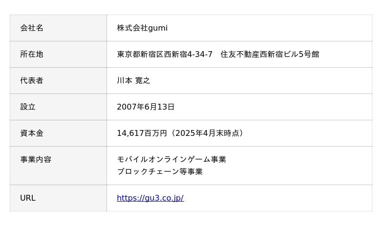 gumiは、「Wow the World! すべての人々に感動を」をMissionに掲げ、モバイルオンラインゲーム事業とブロックチェーン等事業の二つの事業を展開しています。モバイルオンラインゲーム事業では、『当社ゲームエンジン×IP』を軸とした収益性の高いタイトル開発を推進するとともに、開発受託にも注力しております。ブロックチェーン等事業では、ブロックチェーンゲーム等のコンテンツ開発、暗号資産を基盤にしたプラットフォーム構築、有力ブロックチェーンのノード運営、グローバルにおけるファンド投資等を行っております。