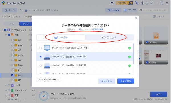 3.復元したいファイルを選択し、保存場所を選択します。例えばOneDriveまたはGoogle Driveなどのクラウドディスクに保存することを検討してください。