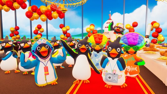 期間限定でパーティー会場での記念撮影ができるようになりました。お気に入りの衣装に着替えて、ペンギンたちと記念撮影しよう!1人ではもちろんパーティーメンバーとも一緒に撮影ができます。