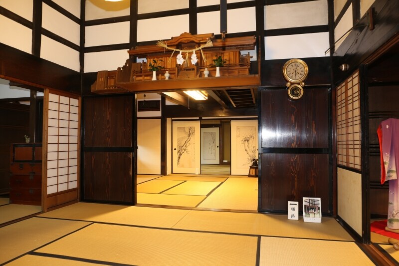 外観は白壁と格子が美しく、往時の商家らしい重厚な趣を漂わせています。屋内に入ると、吹き抜けの梁や土間の構造、座敷の間取りなど、伝統的な日本建築の美しさが随所に見られます。また、1930年には2階部分に洋風の応接室が増築され、和と洋が融合した独特の雰囲気を生み出しています。
