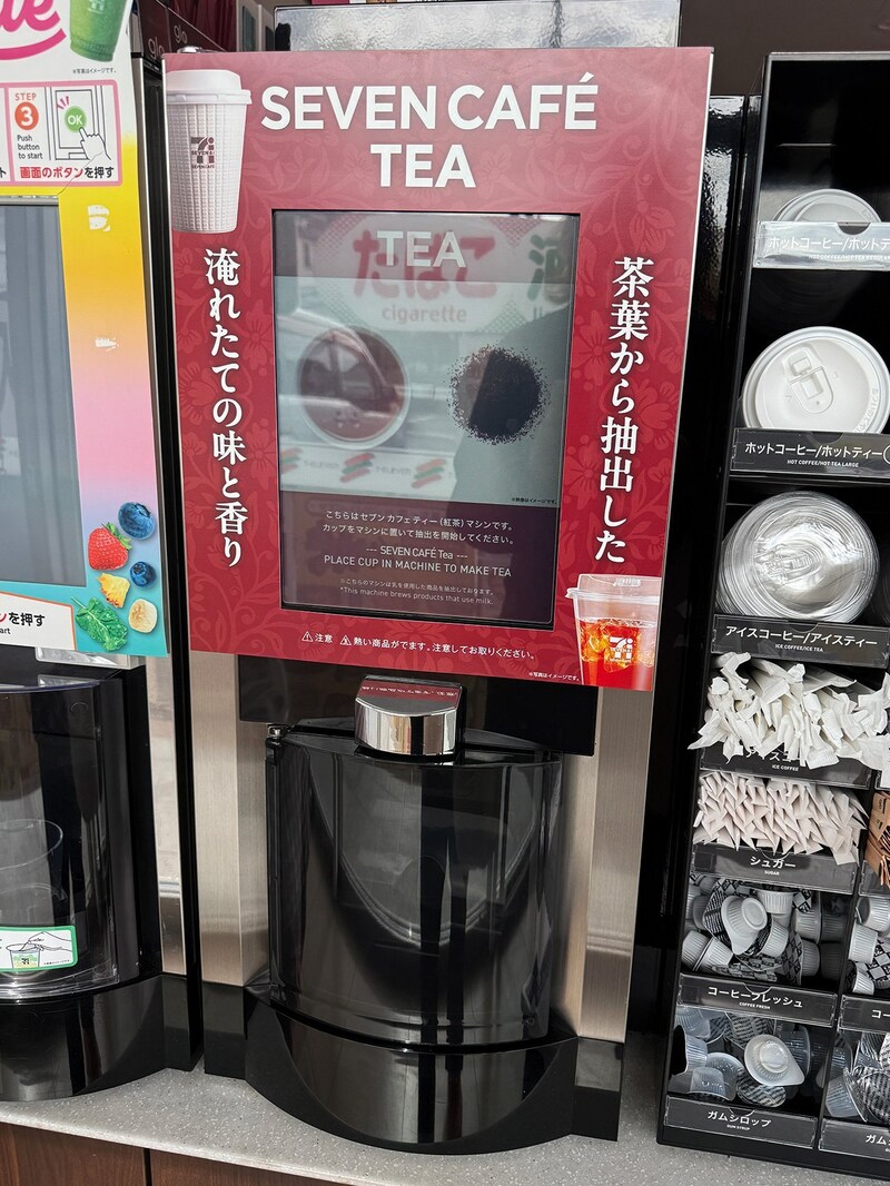 紅茶のマシンを展開し始めたという噂は聞いたことがあったけど、実際に目にするのは初めて。しかも近所のコンビニに導入されるとは!