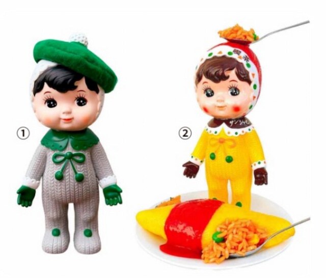 「児玉産業(KODAMA TOY)」の(1)「純喫茶コレクションコラボチャーミーちゃん」(1体/6,600円)、(2)「喫茶サンシャイン コラボ オムライスちゃん」(1体/19,800円)